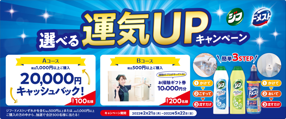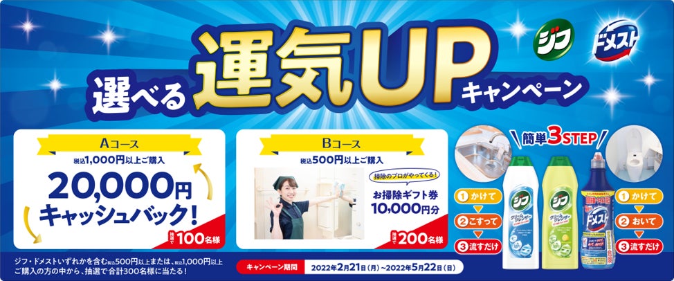 ユニリーバ・ジャパン・カスタマーマーケティング株式会社(本社:東京都目黒区、代表取締役プレジデント&CEO:サンジェイ・サチュデヴァ)が展開するクリーナーブランド「ドメスト」と「ジフ」は、家での時間を快適に過ごすサポートをするため、「選べる運気UPキャンペーン」を2022年2月21日(月)より開始いたします。