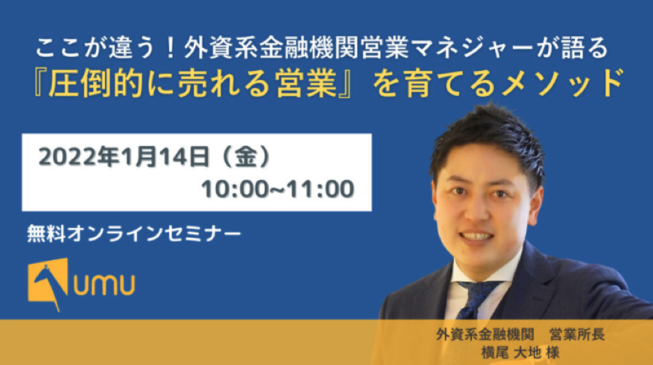 - 2022年1月14日(金)10:00より、「ここが違う!外資系金融機関営業マネジャーが語る『圧倒的に売れる営業』を育てるメソッド」セミナーを開催!