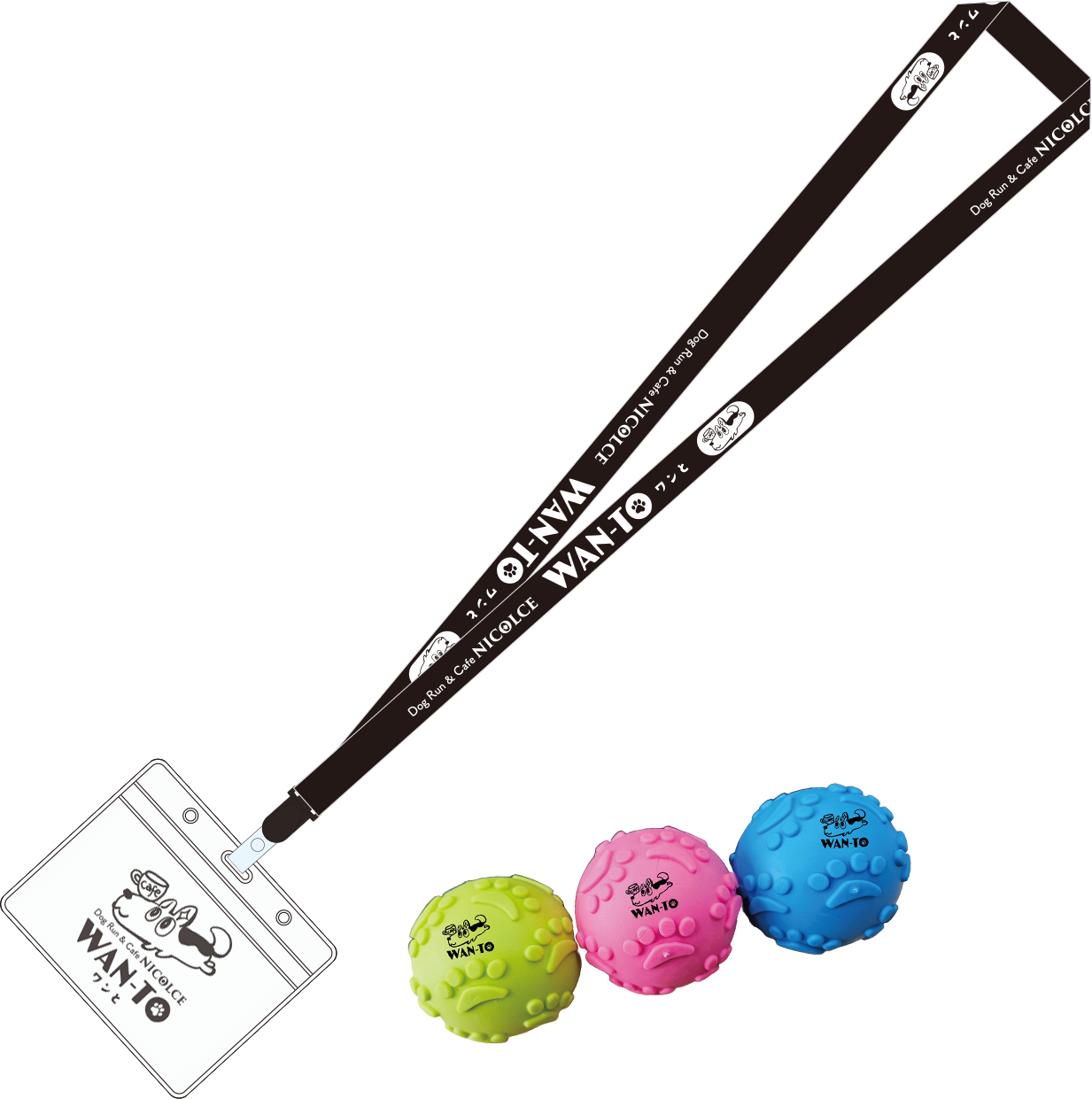 新規オープンを記念して「WAN-TOの会」の新規会員登録をされた方(先着500名様)を対象に、WAN-TOオリジナルグッズをプレゼント!WAN-TOロゴ入りの会員証ケース&ストラップとカラーボールをプレゼントします。カラーボールはお好きなカラーをひとつお選びいただけます。