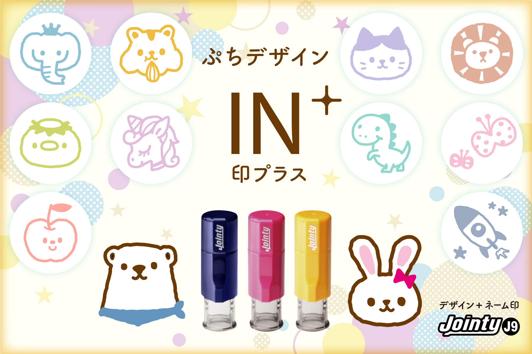 【新商品の特長】 お名前スタンプで人気のイラストを採用