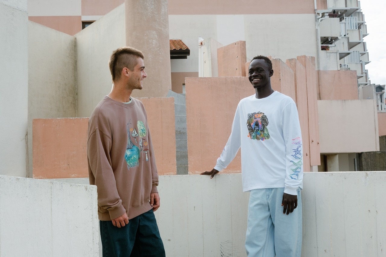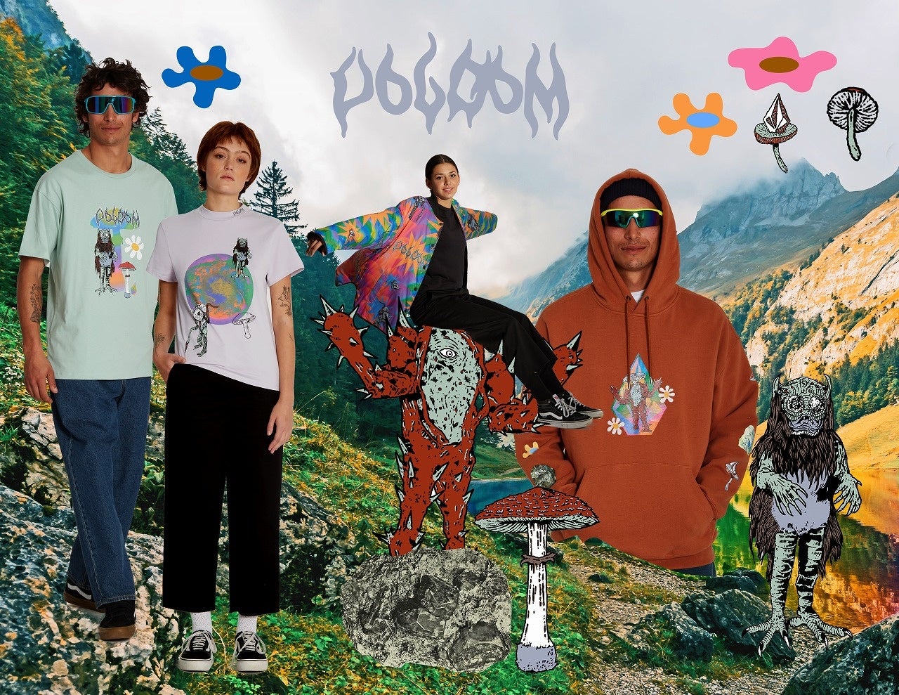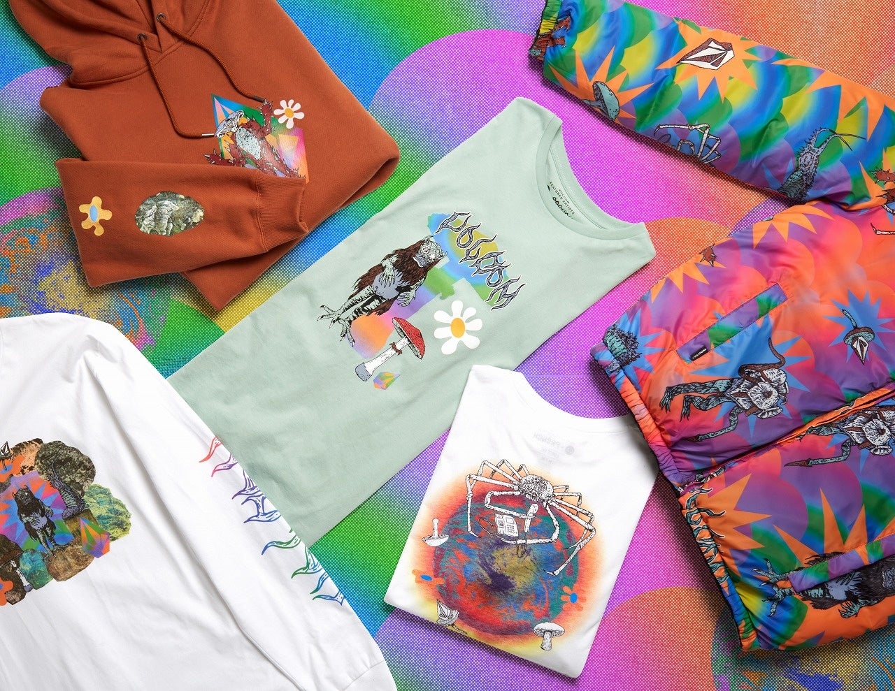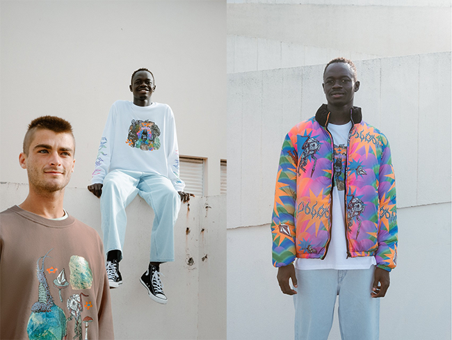 リチャード ’フレンチ’ セイヤーと クリッシー・アボットはイギリス出身の夫婦のアーティストで、普段はソロで活動している二人がタッグを組み、大胆な色彩感覚を融合させ、二人のアートなビジョンに基づいたユニークな Volcomの今季コレクションを制作しました。