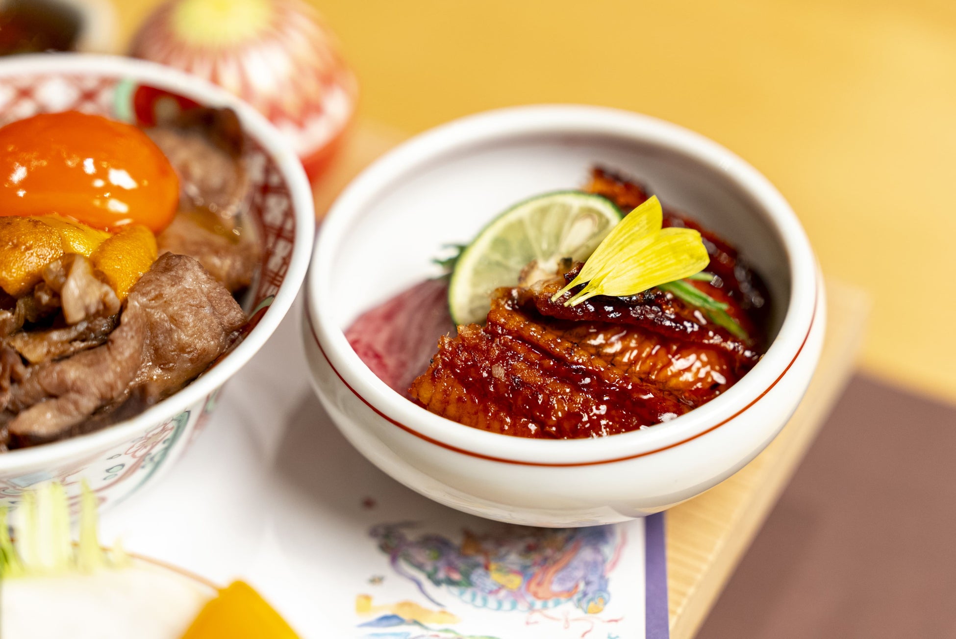 和牛赤身をふんだんに使用した肉茶漬けに、ふっくら焼き上げた鰻も添えております。