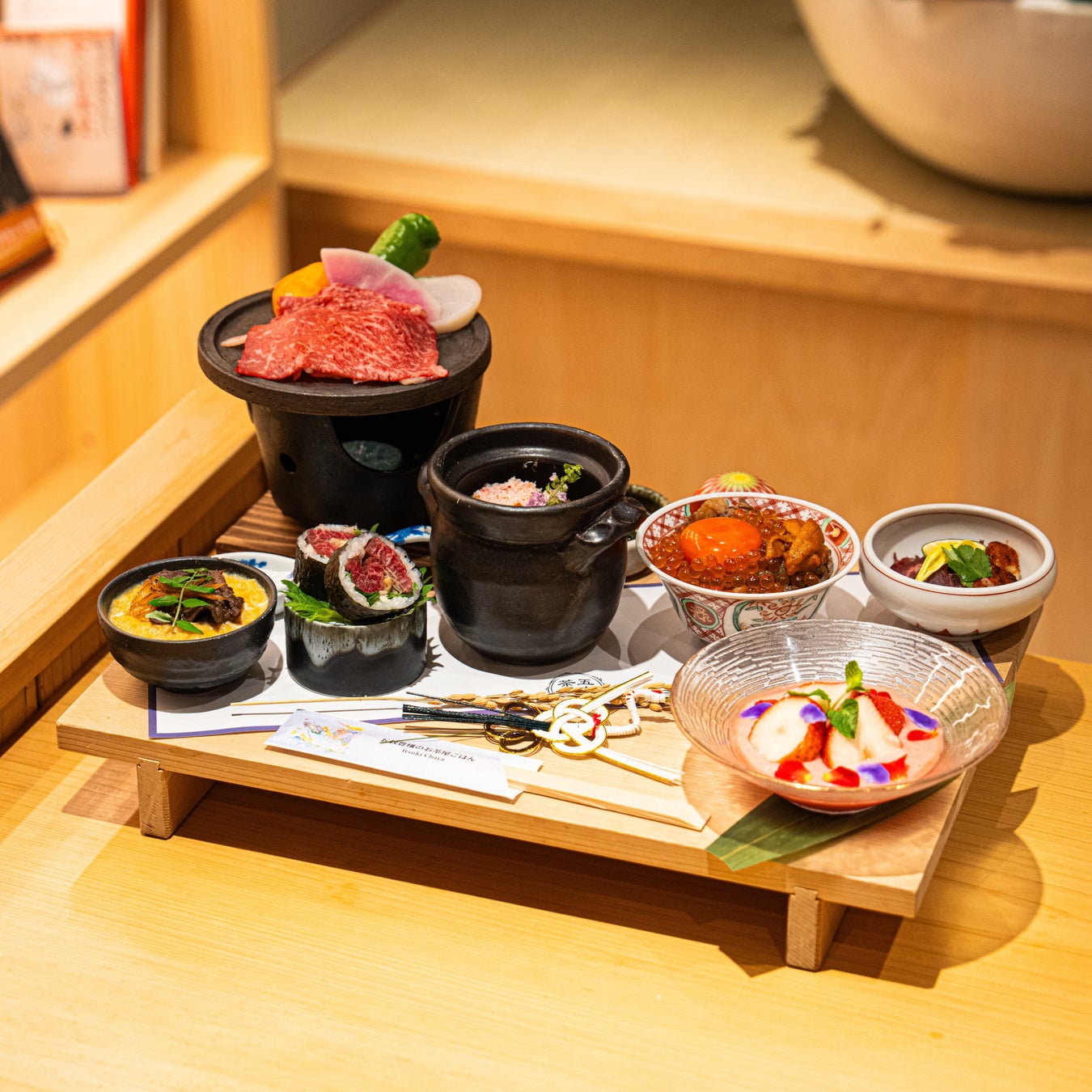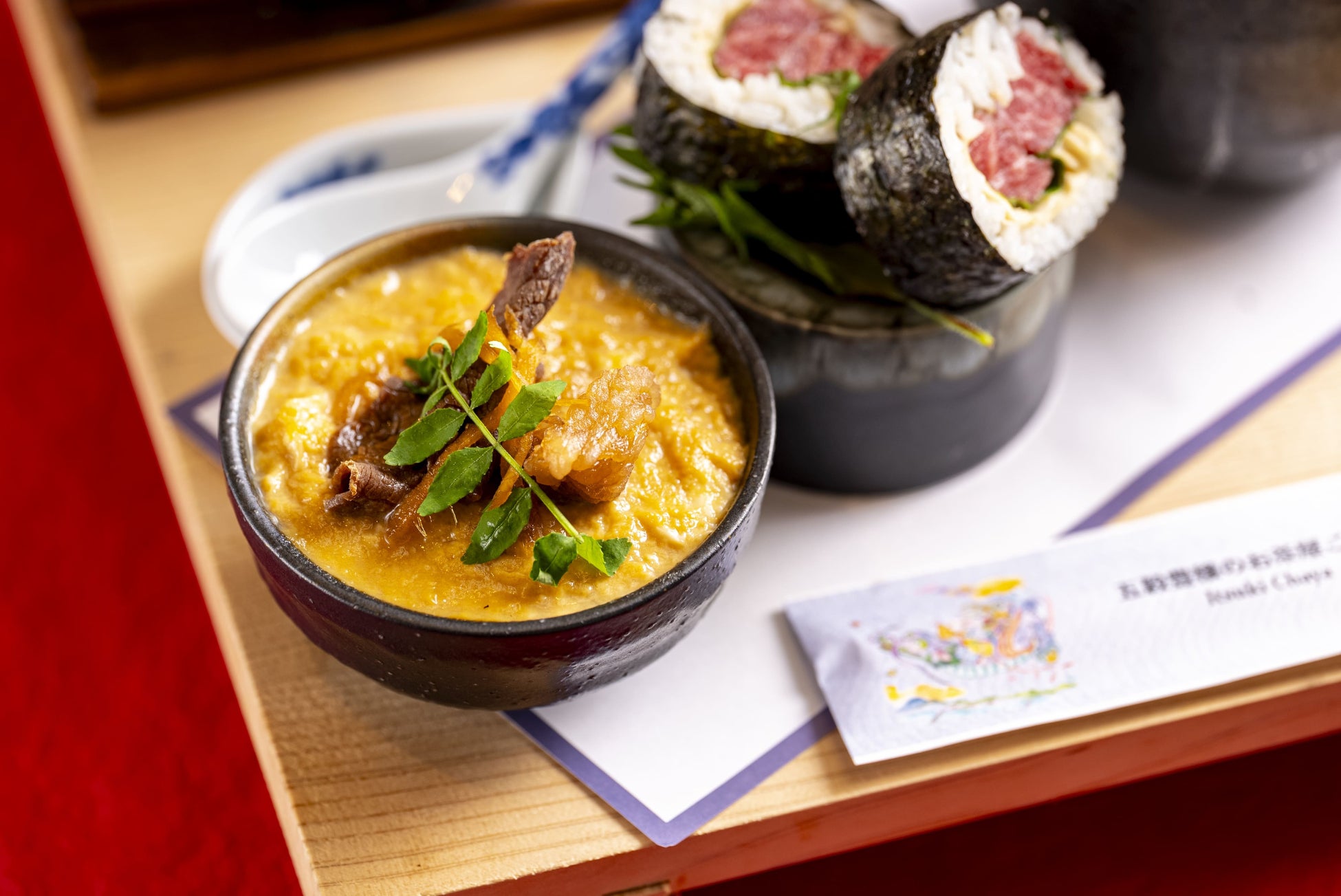 五穀豊穣のお茶屋ごはん®︎ 五木茶屋 先斗町店は「和牛」を使った料理に特化しております。大地の恵みを感じさせる旬の味覚は、和牛との相性も抜群です。見た目も美しいこの膳は、五木茶屋®︎ならではのこだわりが散りばめられ、冬の至福を感じさせる特別なメニューです。