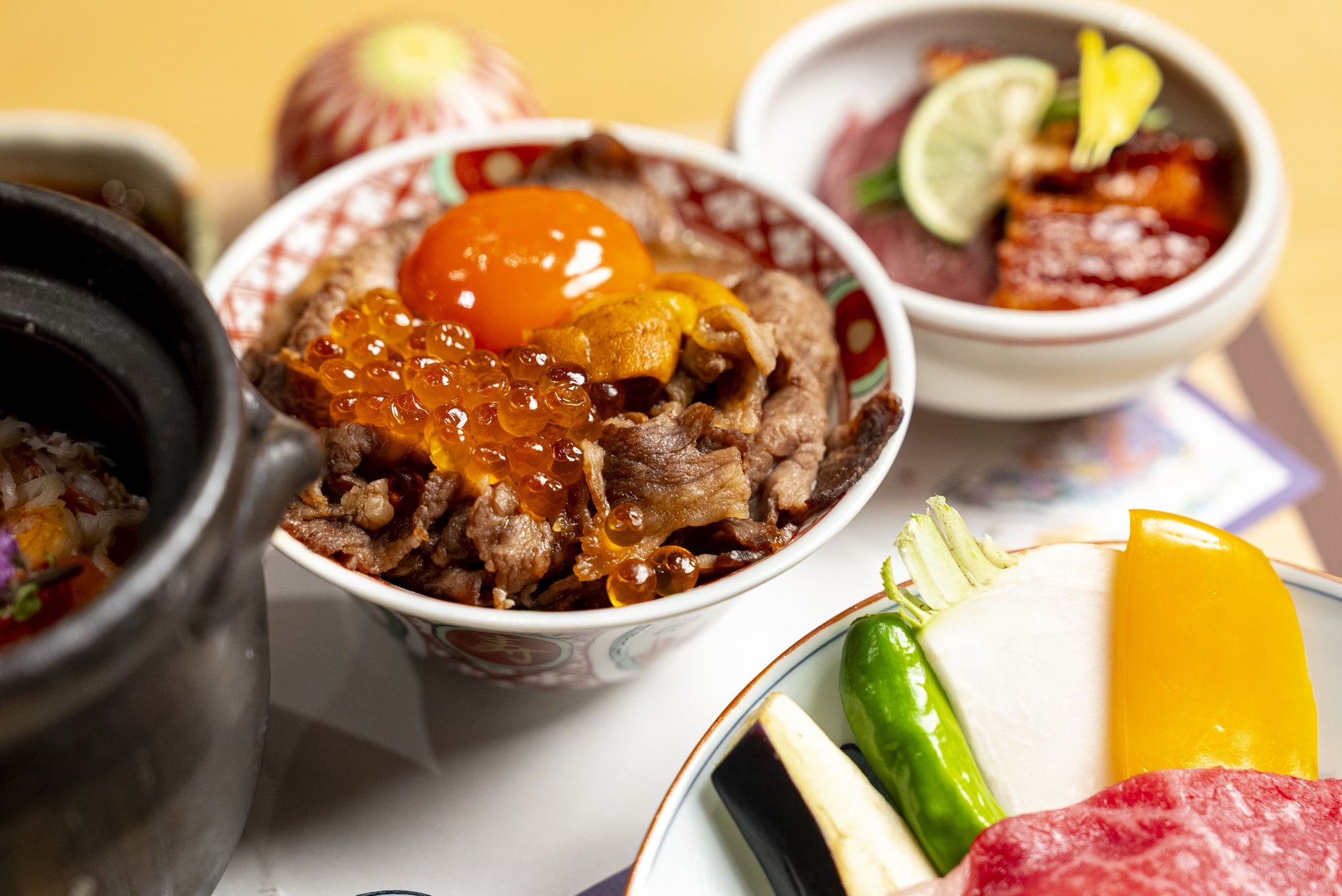 上質な和牛を特製のたれに絡め、京都産鶏卵といくらと雲丹をあしらったすき焼き丼です。