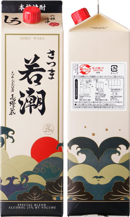 焼酎業界でも、紙のリサイクルに取り組む動きが始まっています。鹿児島県志布志市にある若潮酒造は、主要3商品の焼酎パックに「環境配慮型パッケージEP-PAK・GL」を2022年12月より導入。従来の焼酎パックは牛乳パックとは異なり、内側にアルミフィルムが貼り合わされているためリサイクルに適していませんでした。隣接する大崎町は、国内有数のリサイクル町。焼却施設を保有せず、長年ゴミの分別とリサイクルに取り組み、リサイクル率はなんと83%。〝町にあるすべてのものはリユース、リサイクルされて循環する〟を掲げた、サーキュラーヴィレッジ大崎町を目指しています。「焼酎メーカーとして、リサイクルを起点とした地域の活性化に貢献したい」という思いから、若潮酒造は大崎町SDGs協議会と連帯。大崎町や志布志市で日常酒として飲まれている焼酎の紙パックのリサイクルを導入し、焼酎蔵が地域の住民ととも「燃やすごみのない」町づくりに取り組みます。