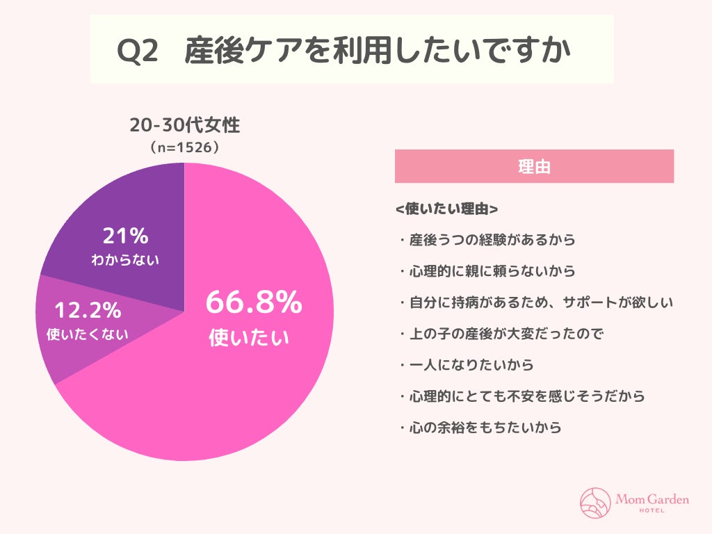 - 20~30代女性の約7割が「産後ケアを利用したい」と回答