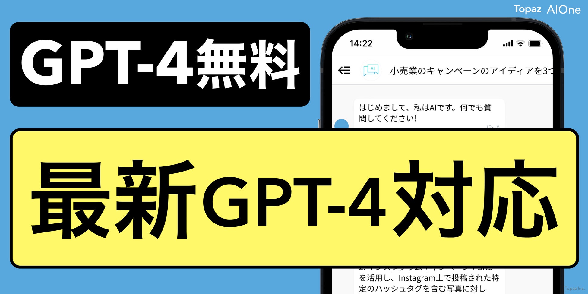 【日本初!最新GPT-4無料】Topaz、「AIOne」「ビジネスAI」最新GPT-4モデル「gpt-4-0613」「gpt-3.5-turbo-16k」提供開始【無料提供・従来比4倍長さ実現】