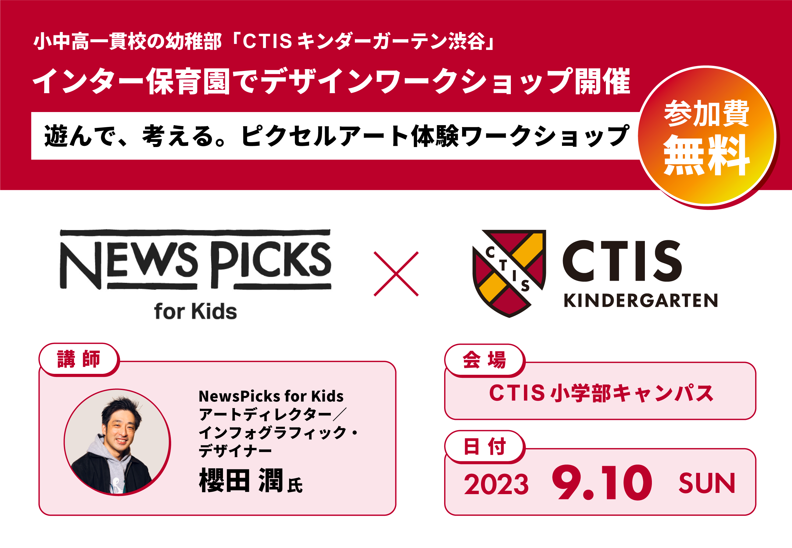 9/10(日)「NewsPicks for Kids」と小中高一貫教育を行うインターナショナルスクールの幼稚部「CTISキンダーガーテン渋谷」が参加費無料のワークショップを開催します。
