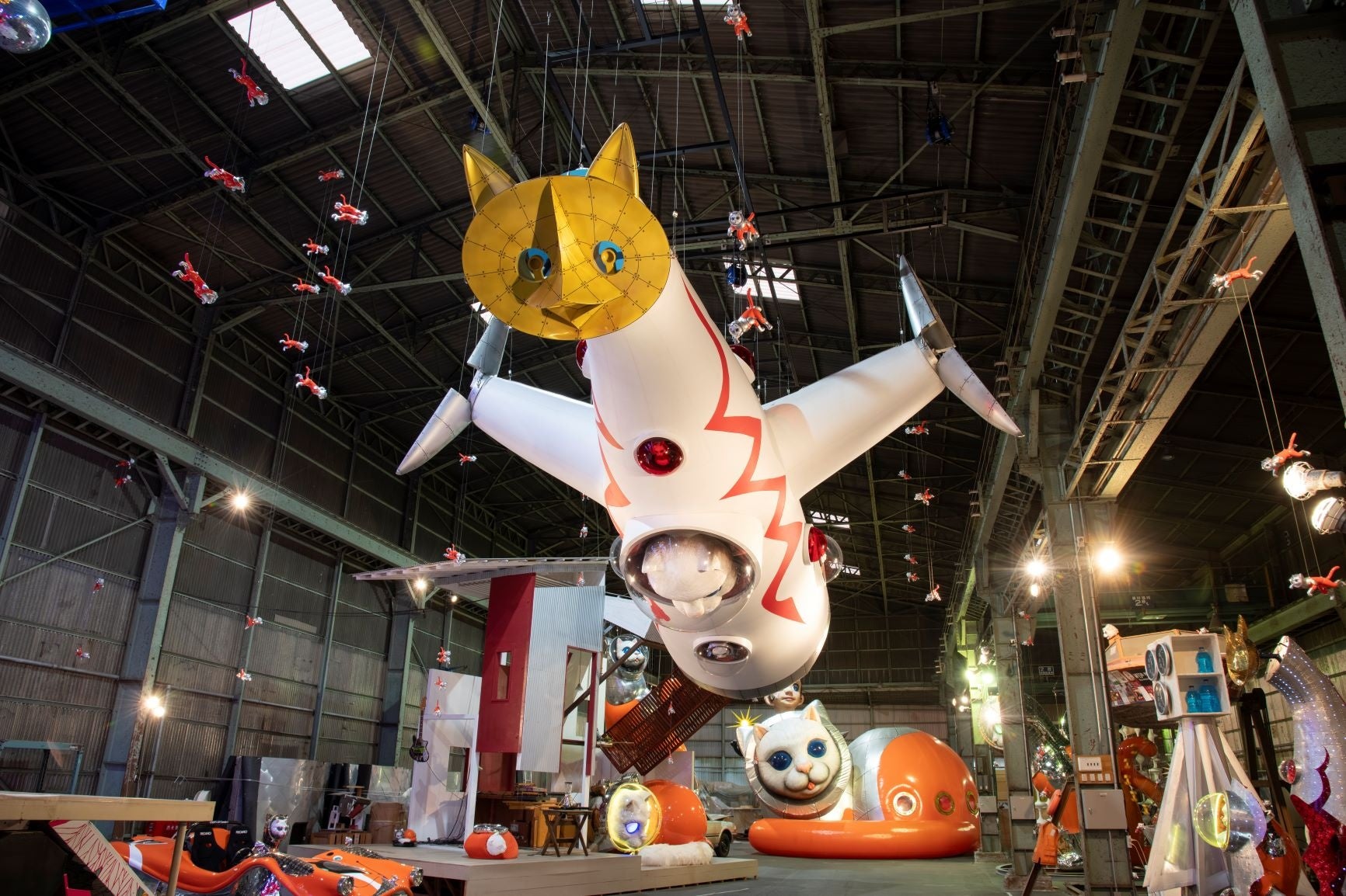 「北加賀屋MULTI BARTHE」は、歴史ある造船所跡地を舞台に、建築家やアーティストが唯一無二のアート×サウナ空間を創出するイベントです。本イベントにおいて、現代美術家・ヤノベケンジが新作インスタレーション《SHIP’S CAT SAUNA》を発表。キャンピングカー「エアストリーム」を改装し、“内気浴”の機能を備えた空間で、作品の中に入り込みながら“整う”体験を楽しむことができます。そして、同時に開催されているのが、約1,000m²の元鋼材加工工場・倉庫を活用した「MASK(MEGA ART STORAGE KITAKAGAYA)」で保管する大型現代アート作品の一般公開・展覧会「Open Storage 2025 KENJI YANOBE LUCA:THE LANDING」です。