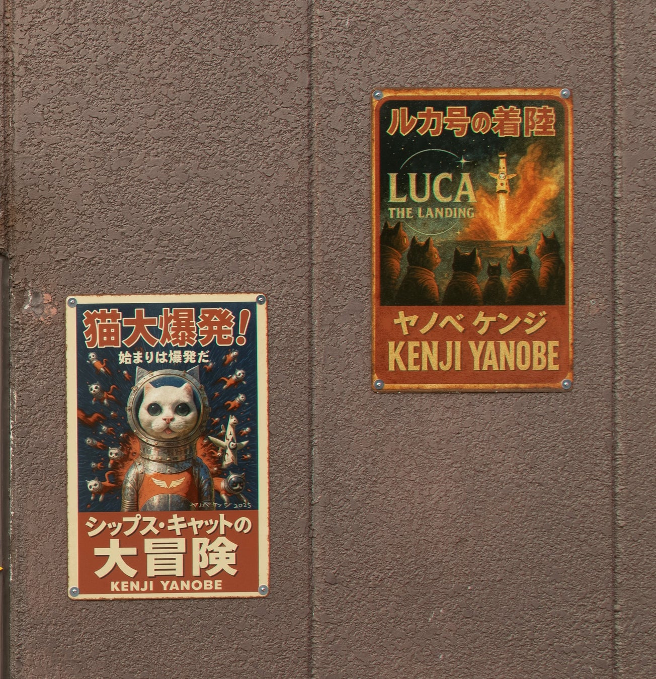 今回、当社は2イベントに合わせて、《SHIP’S CAT SAUNA》やヤノベケンジ氏の代表作《SHIP’S CAT》をモチーフにしたホーロー看板を制作しました。イベント会場内や北加賀屋の町中など6カ所に看板を展示し、作品世界を拡張します。
