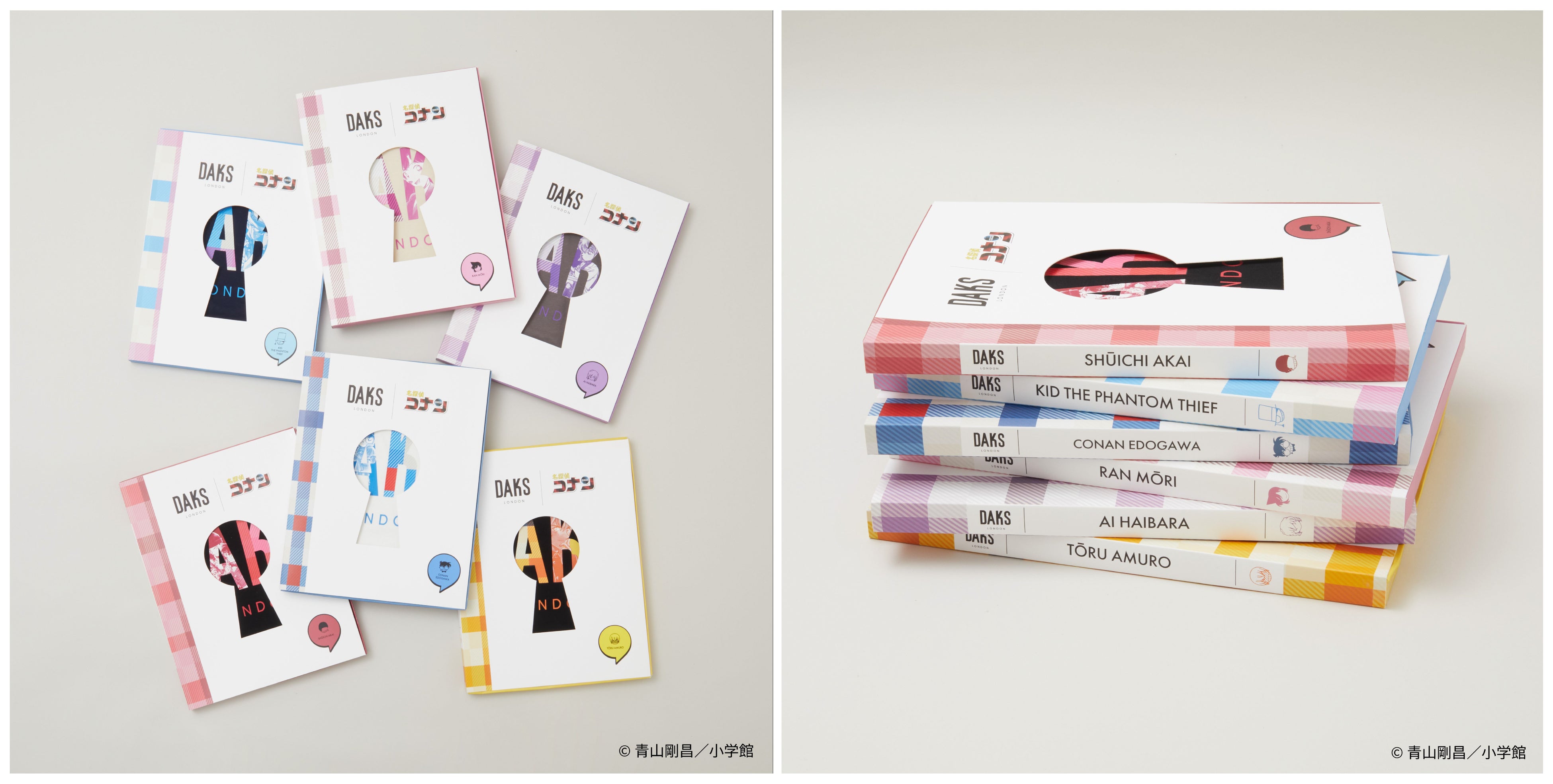 今回のコラボレーションのために、『名探偵コナン』のキャラクターそれぞれのイメージカラーをベースに、「DAKS」の象徴である「ハウスチェック」を再構築した限定チェックを開発。