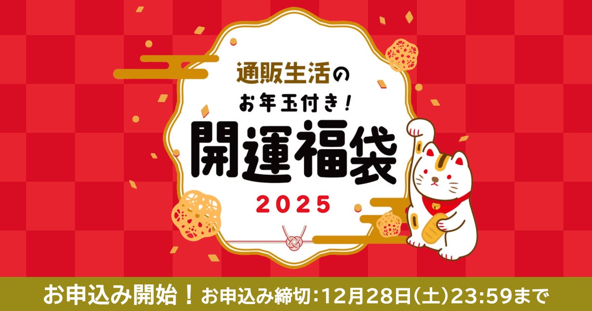 カタログ雑誌『通販生活』の発行や、通販生活ウェブサイト(以下「ウェブ通販生活」)を運営する株式会社カタログハウス(本社:東京都渋谷区、取締役社長:平野裕二)は、2024年12月14日(土)より、メルマガ会員と公式LINEアカウントのお友だち登録者限定で「通販生活のお年玉付き!開運福袋2025」(以下、「開運福袋」)の抽選販売を行ないます。