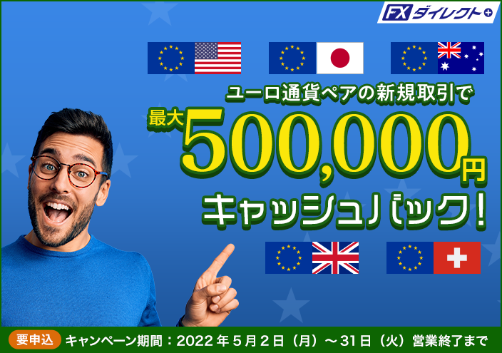 セントラル短資FX株式会社(本社:東京都中央区、代表取締役社長:松田 邦夫)は、2022年5月31日までユーロ通貨ペアの新規取引を対象としたキャッシュバックキャンペーンを実施します。
