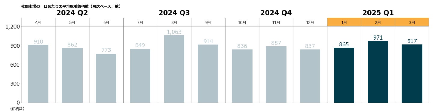 日本最大※のPTSを運営するジャパンネクスト証券 夜間市場クォータリーレポートを発表~2025年1月~3月期~