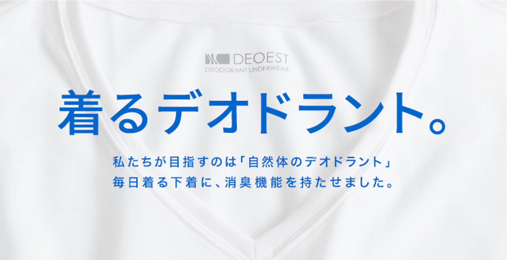 2011年より「デオエスト」としての販売を開始し、強力な消臭機能を活かしながらインナーとしての着心地、快適性のための繊維技術を余すことなく投入し、COOL、WARMなど季節対応、着用シーンに合わせた商品を数多くラインアップしております。