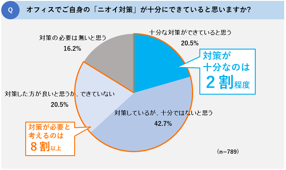 また、回答者の8割以上がニオイ対策の必要性を感じていながら、満足いく対策ができていないことも分かりました。