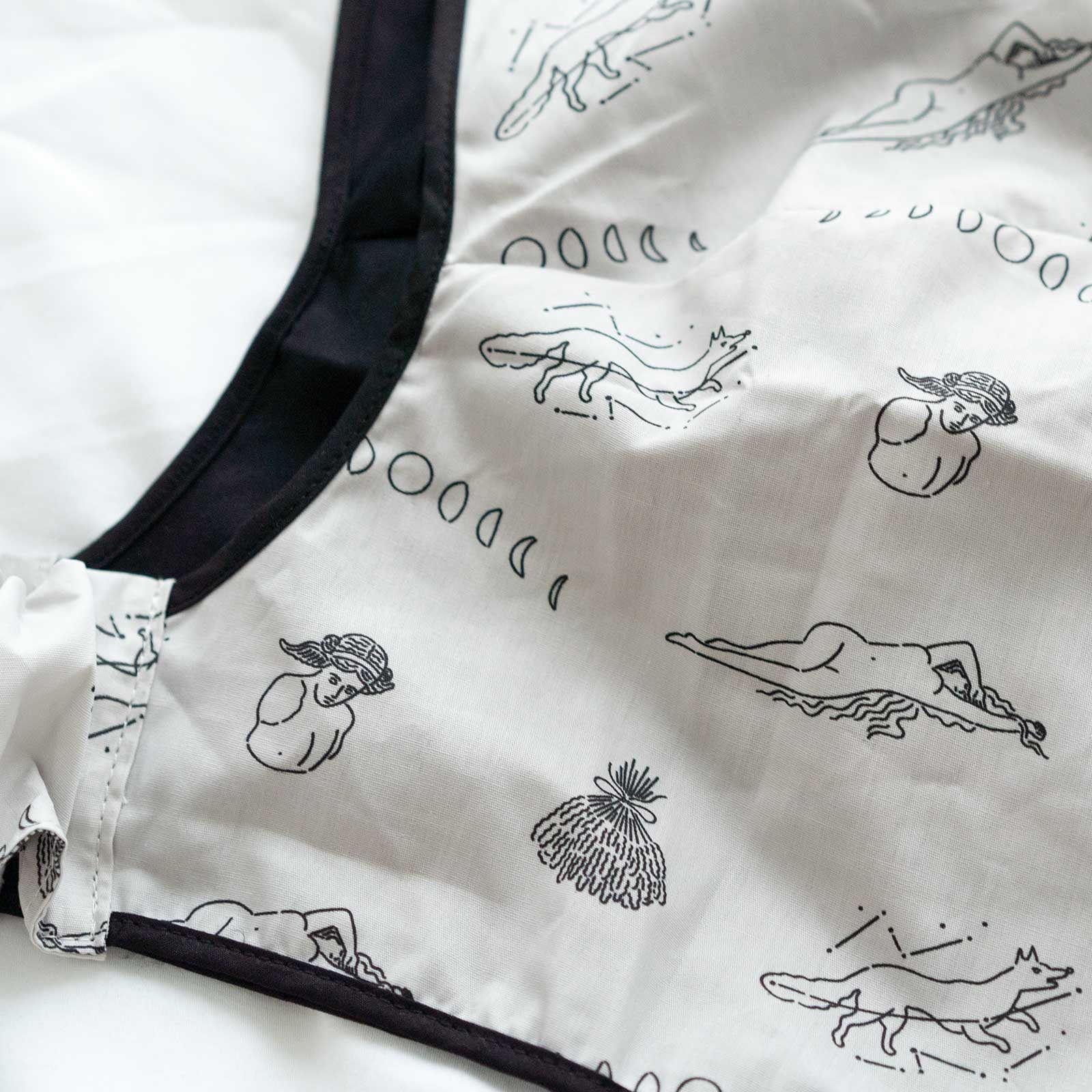 髪が肩より短いユーザーの声から生まれたナイトキャップ。 寝ている間に髪がはねてしまいがちなショートからミディアムヘアだから、シスターは上から覆うようにかぶるデザインにして寝癖を予防。 顎の下でリボンを結ぶだけの装着方法は、簡単で脱げが気にならない点も嬉しい。 「HAIR CREPERIE」と同じく、髪があたる面にはシルクコットンを採用し、表面はコットン100%。