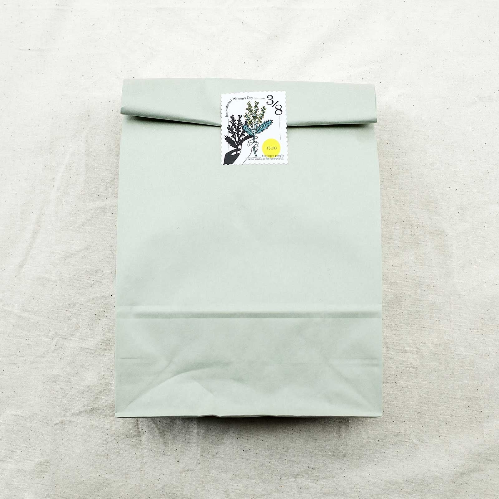 朝野ペコさんのイラスト入り!ミモザの切手型シールとペーパーバッグを合わせたラッピングセットを、2022年2/17(木)から3/21(月)まで「ITSUKI」オンラインストアで無料でプレゼント開始!