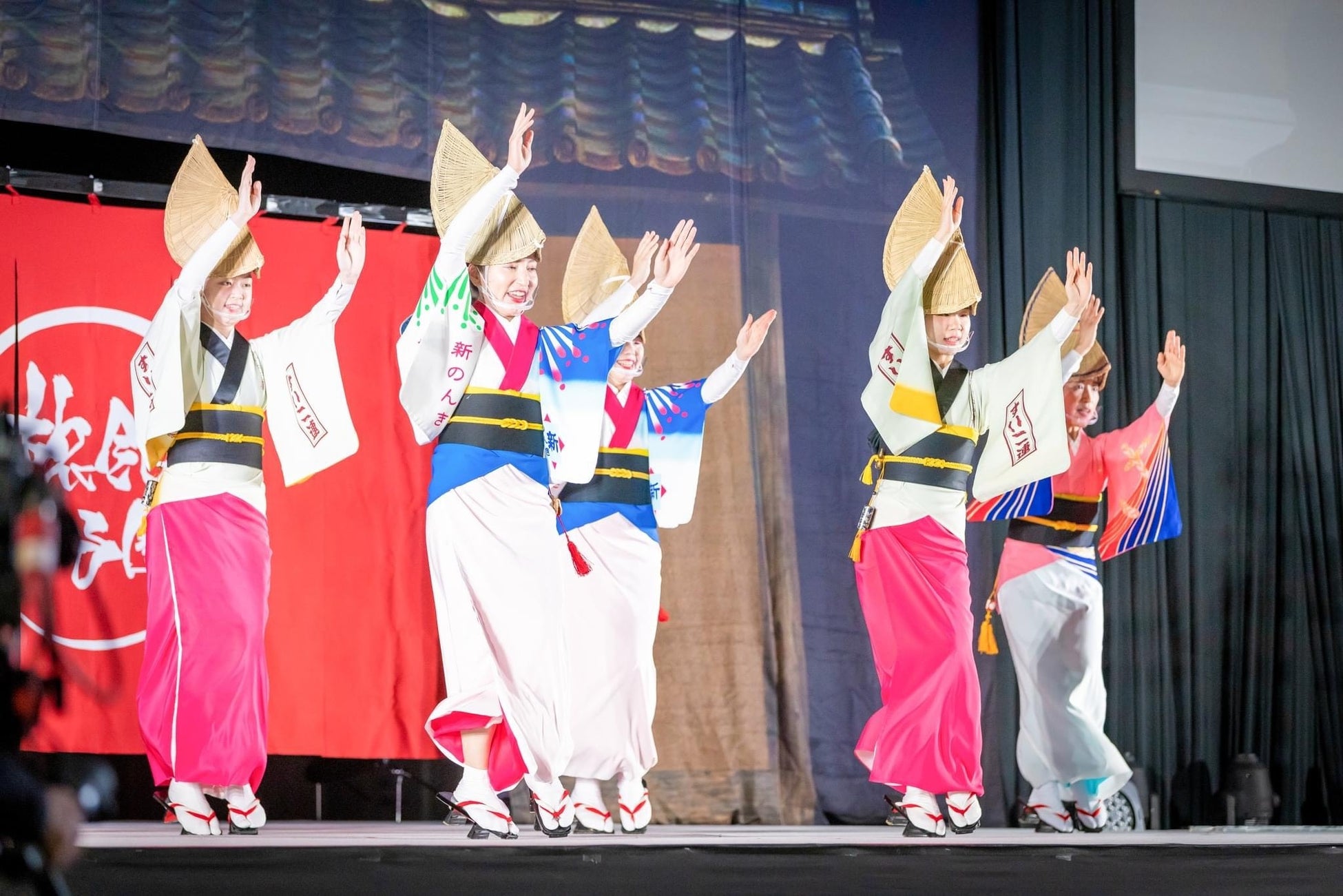 温泉むすめ、書道家パフォーマンス(青柳美扇氏)、阿波踊り、くまモン、ライブコマース等、多彩なステージコンテンツです。