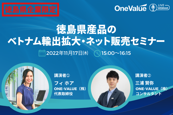 徳島県企業限定の『ベトナム輸出拡大・ネット販売セミナー』の無料開催が決定【ONE-VALUE(株)】