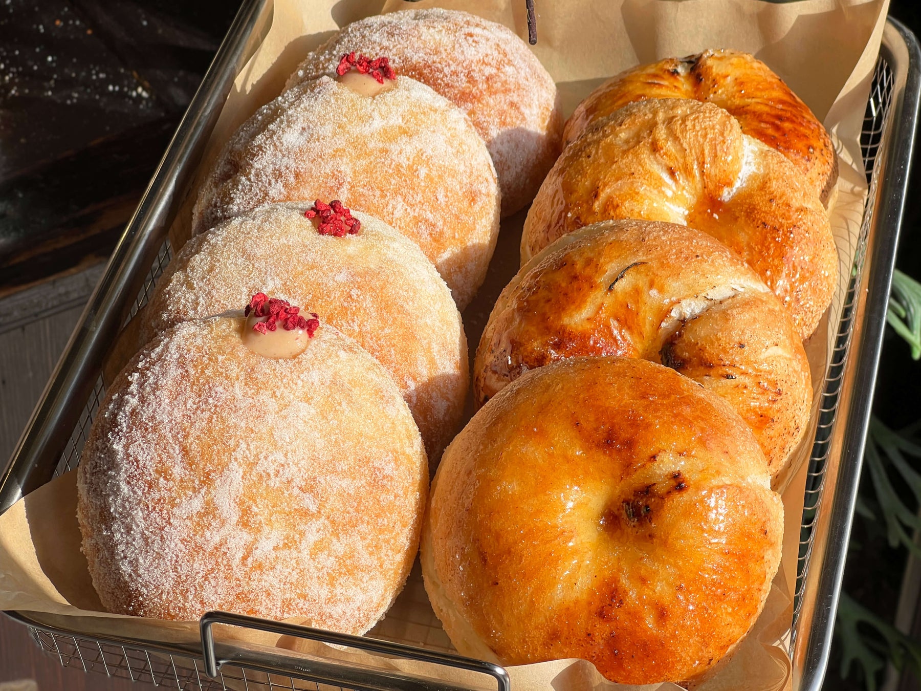 むぎゅっと食感の生ベーグルに、外側をパリッとほろ苦いブリュレで仕上げました。