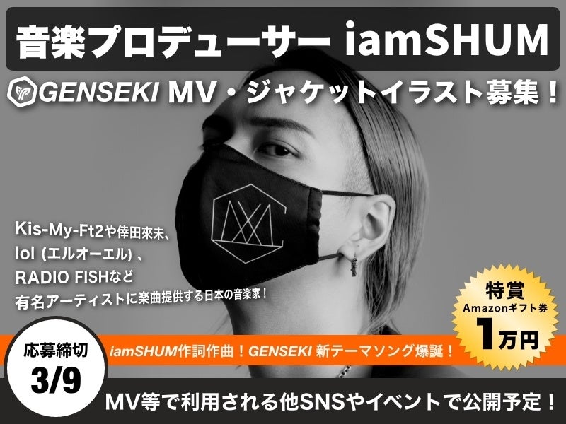 iamSHUMさん主催のイラストコンテストでは、「GENSEKI」のテーマソングとして制作いただいた新曲「原石」のMVとジャケットに用いるイラストの募集を行います。
