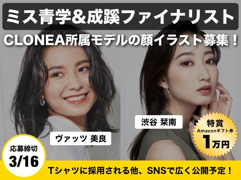 インフルエンサー事務所CLONEA主催のイラストコンテストでは、代表のヴァッツ美良さんと所属モデル渋谷栞南さんのフェイスイメージイラストを募集します。
