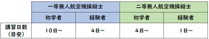 ※いずれも基本飛行・夜間飛行・目視外飛行の実技講習がセットになっています。