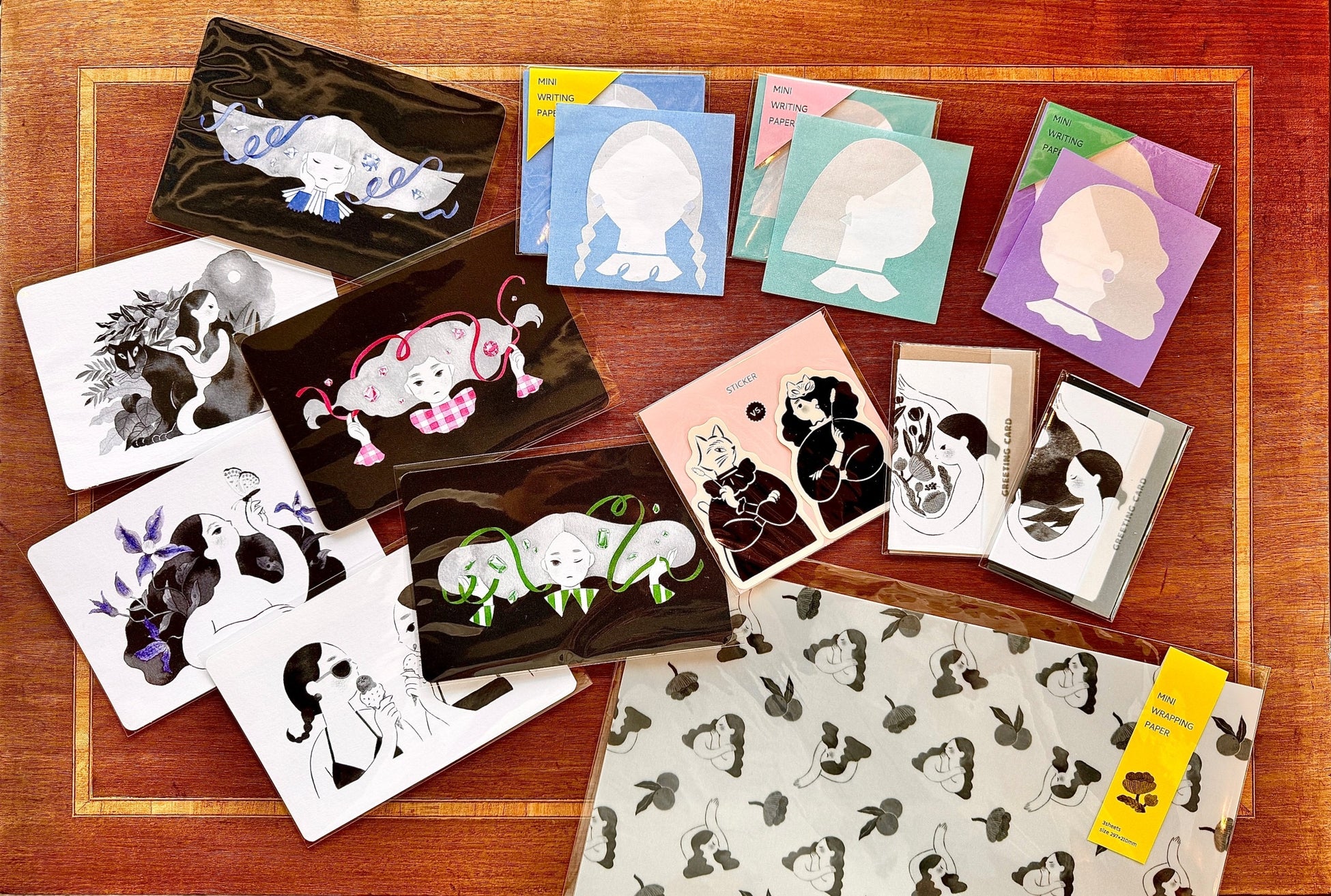 通常は直営の鉱物のような琥珀糖こうぶつヲカシの販売と、ケータリングで培った食の演出を体験できるカフェが楽しめる店内に、この期間だけ4人の作家のグループ展で店内を盛り上げる。