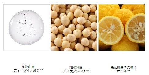 植物由来ディープイン成分(ペプチド)※2 が髪内部に浸透して亀裂を埋め、加水分解ダイズタンパク※3 がキューティクルの亀裂を補修。高知県産ユズ種子オイル※4がなめらかに包み込みます。※2 ジラウロイルグルタミン酸リシンNa ※4 ユズ種子油(※2~4は保湿成分)