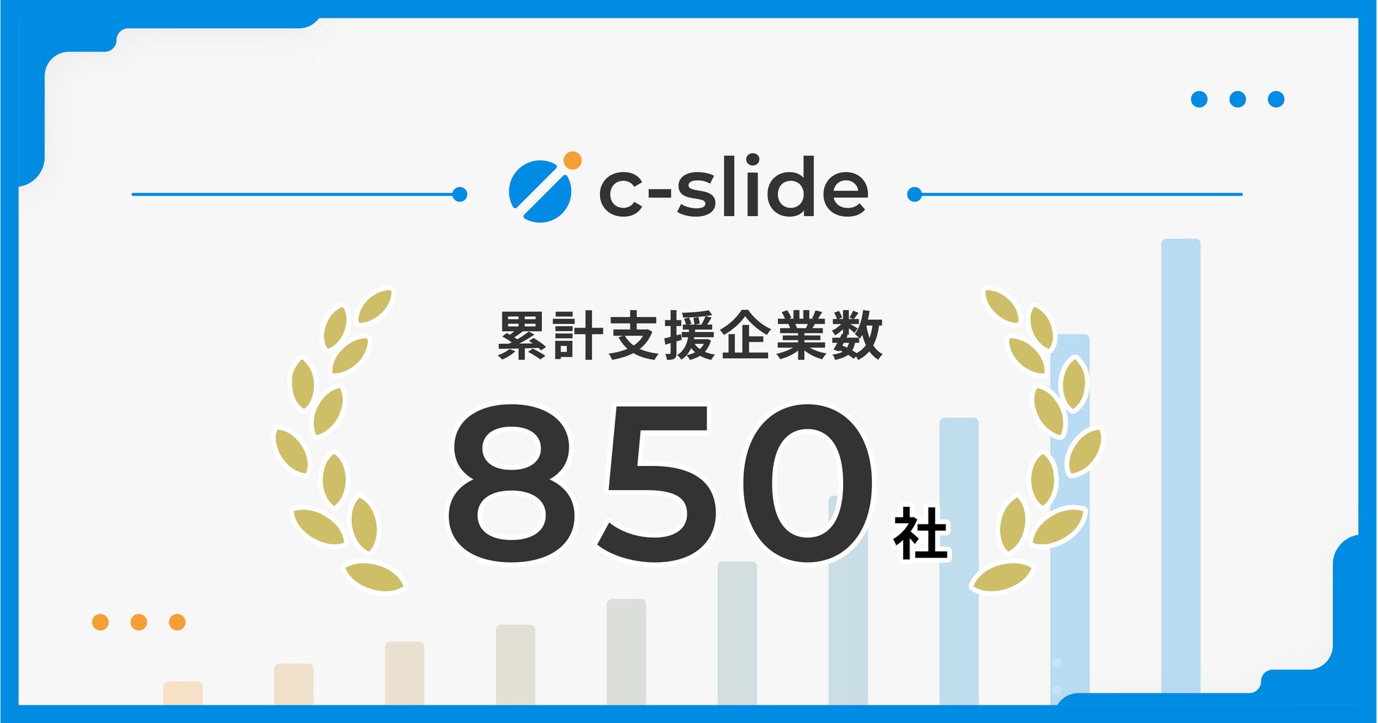 株式会社Cone(本社:大阪府大阪市、代表取締役:佐藤 立樹、以下「当社」)は、資料作成代行サービス「c-slide(シースライド)」の累計支援企業数が850社を突破したことをお知らせします。ご利用いただいている皆さまに、あらためてお礼申し上げます。