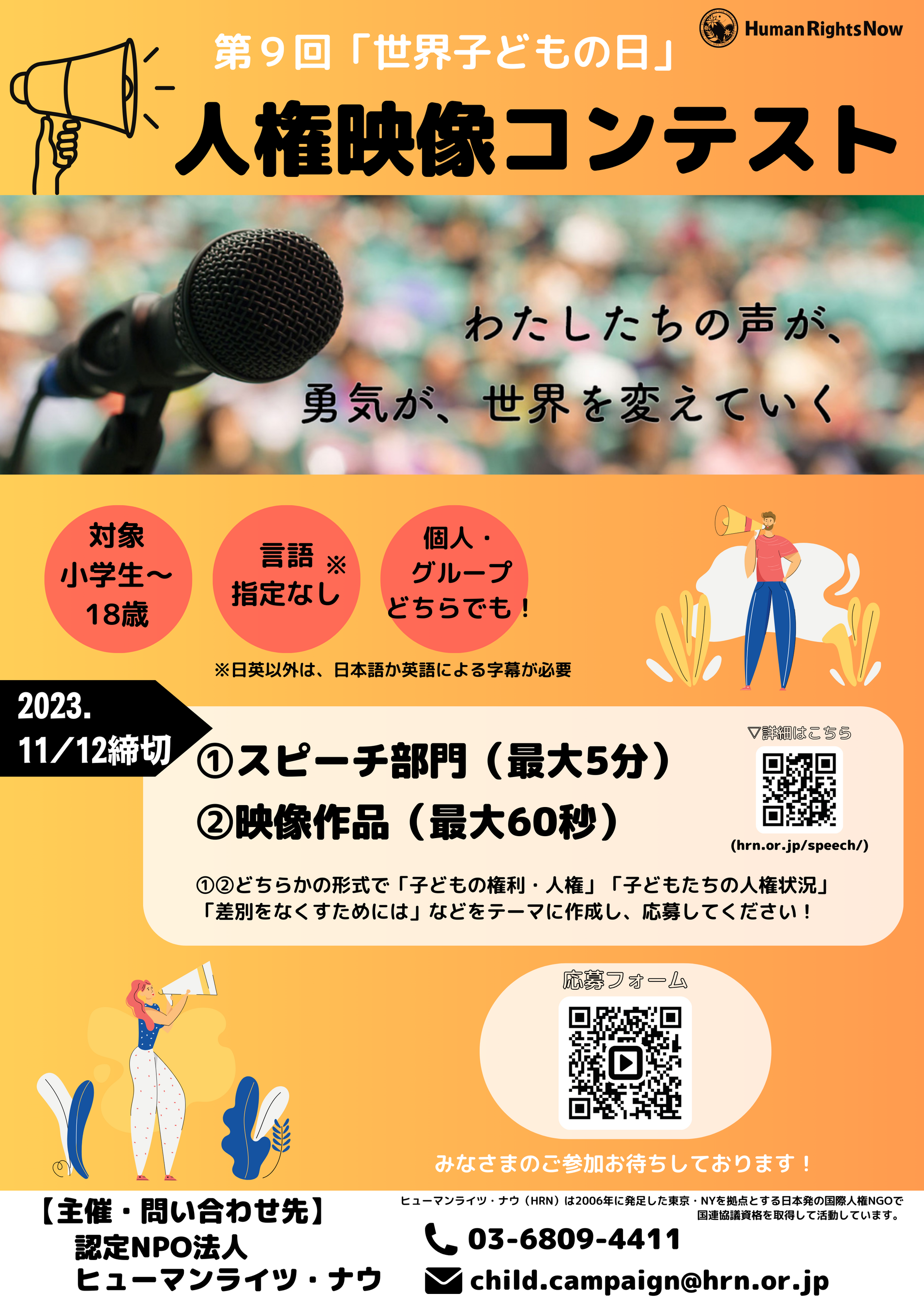 このコンテストを通して、「より安全で平和な世界を築きたい」という想いを形にしてみませんか︖⽇本から世界へ、⼦どもたちの笑顔の輪を⼀緒に広げましょう。若者自らが勇気を出して子どもの権利のために声をあげることの意義を伝えていくことをコンセプトとしています。また、⽇々⼤きく変化する世界でみなさんが、⼈権について「学び」、「考え」、「発信」し、より良い未来を築く⼀歩を踏み出すきっかけとなることが、この企画の⽬的です。今年からは字幕付きで、日本語・英語以外の言語でも応募可能となりました。