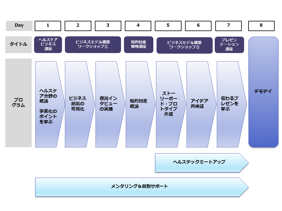 ※ヘルステックミートアップやデモデイなど一部のプログラムについては、新型コロナウイルス感染症の状況に応じて、大阪公立大学健康科学イノベーションセンター等で実施する場合もございます。