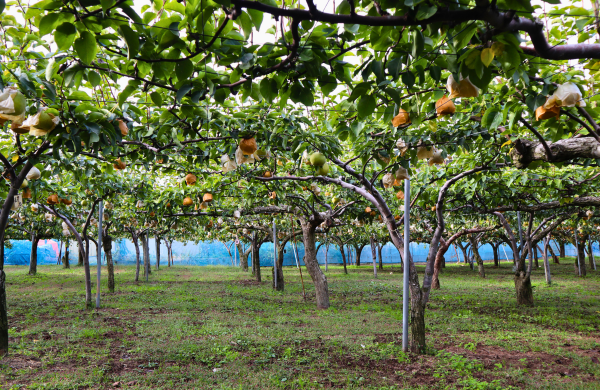 秋田県潟上市天王大崎地区に位置する7474園では、代々続けて和梨・洋梨と数多くの梨を栽培しています。特に、かおり梨の栽培ではこの地区最大の果樹園です。