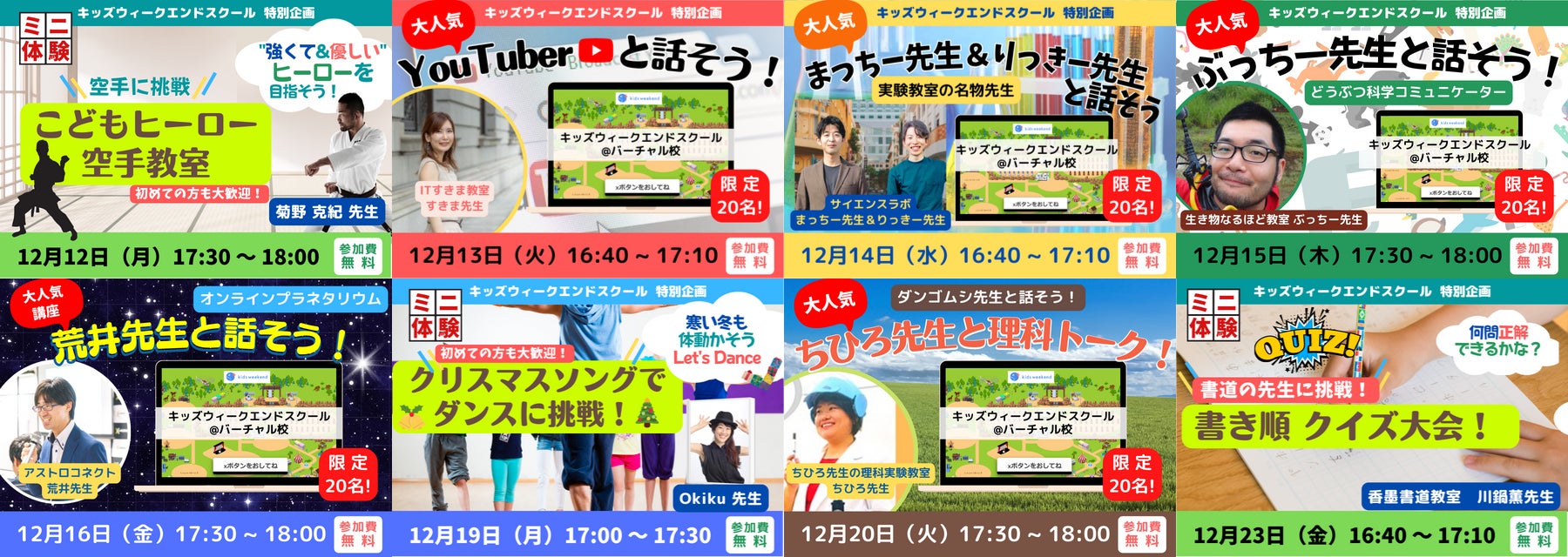 2023年1月の開講に先立ち、現在、当スクールの無料体験を受け付けています。また、キッズウィークエンドで人気の先生たちと直接会話ができる無料特別企画も随時実施しています。