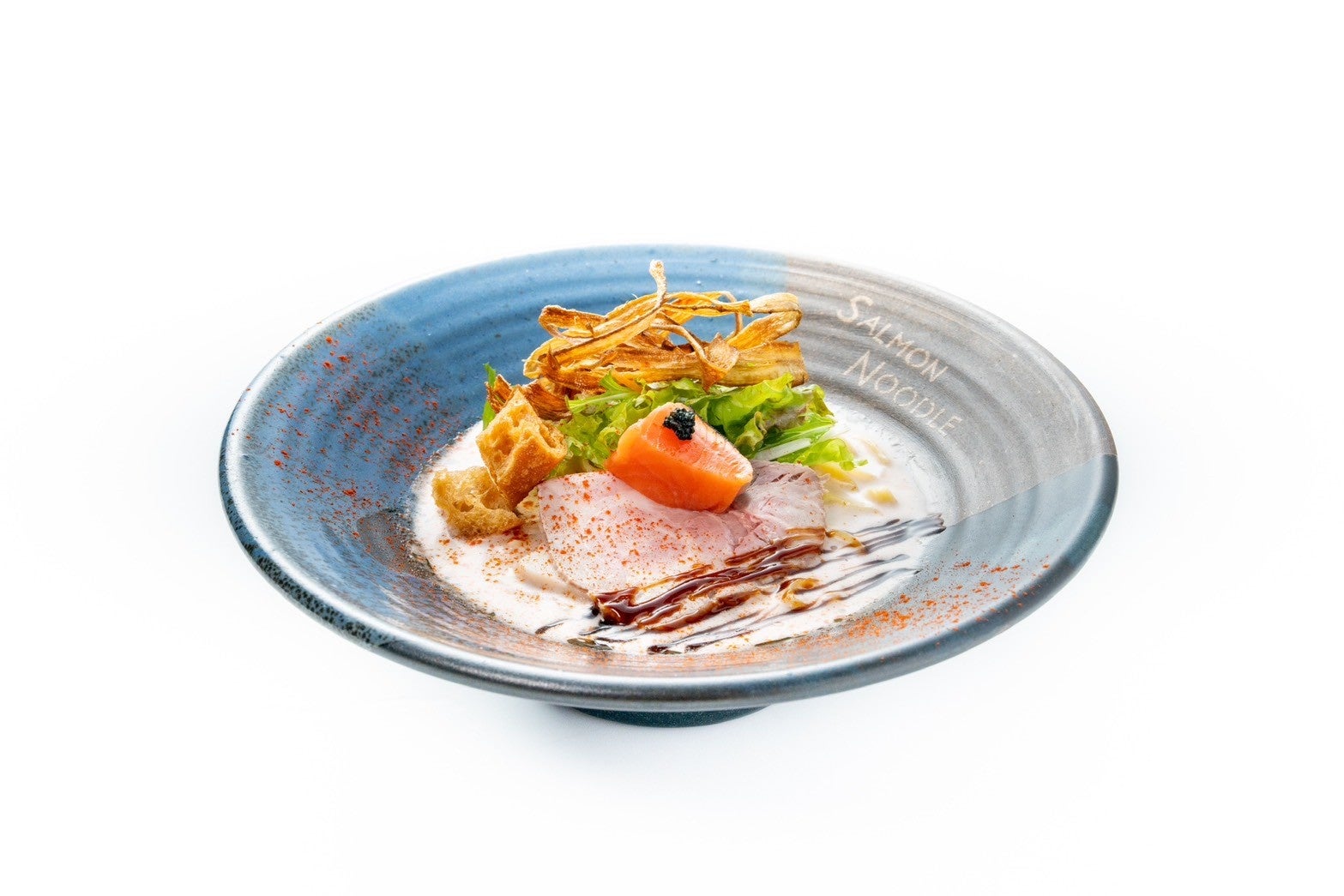 この器は、長い歴史を持つ有田焼の窯元とともに、フレンチラーメンのために特別に制作されたオリジナル仕様で、サーモンシリーズではサーモンnoodle三軒茶屋が初登場となります。