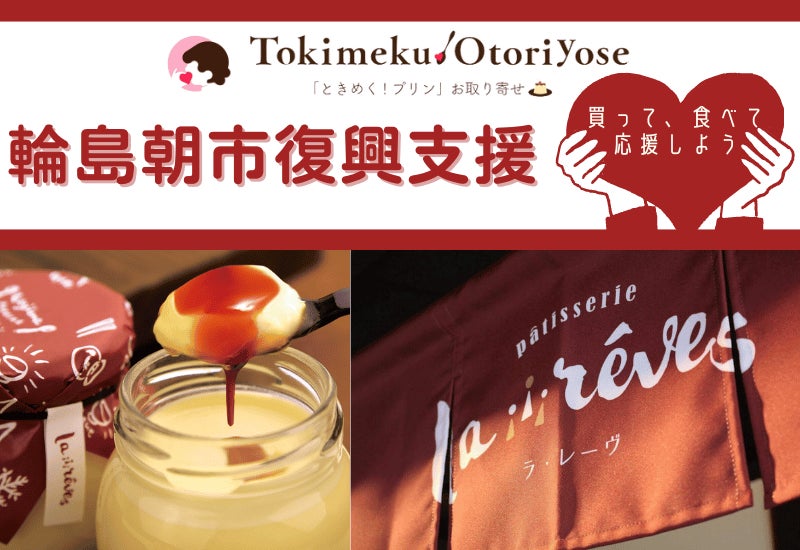 株式会社グルメ杵屋(所在地:大阪市住之江区、代表執行役社長:椋本 充士)が運営する「日本初※1のプリン専門ECモール『ときめく!プリン』お取り寄せ」は、大阪木津卸売市場の「木津の朝市」にて、能登半島地震で被災した輪島朝市通りの洋菓子店「パティスリーラ・レーヴ」の輪島プリンの復興支援特別販売を開催します。