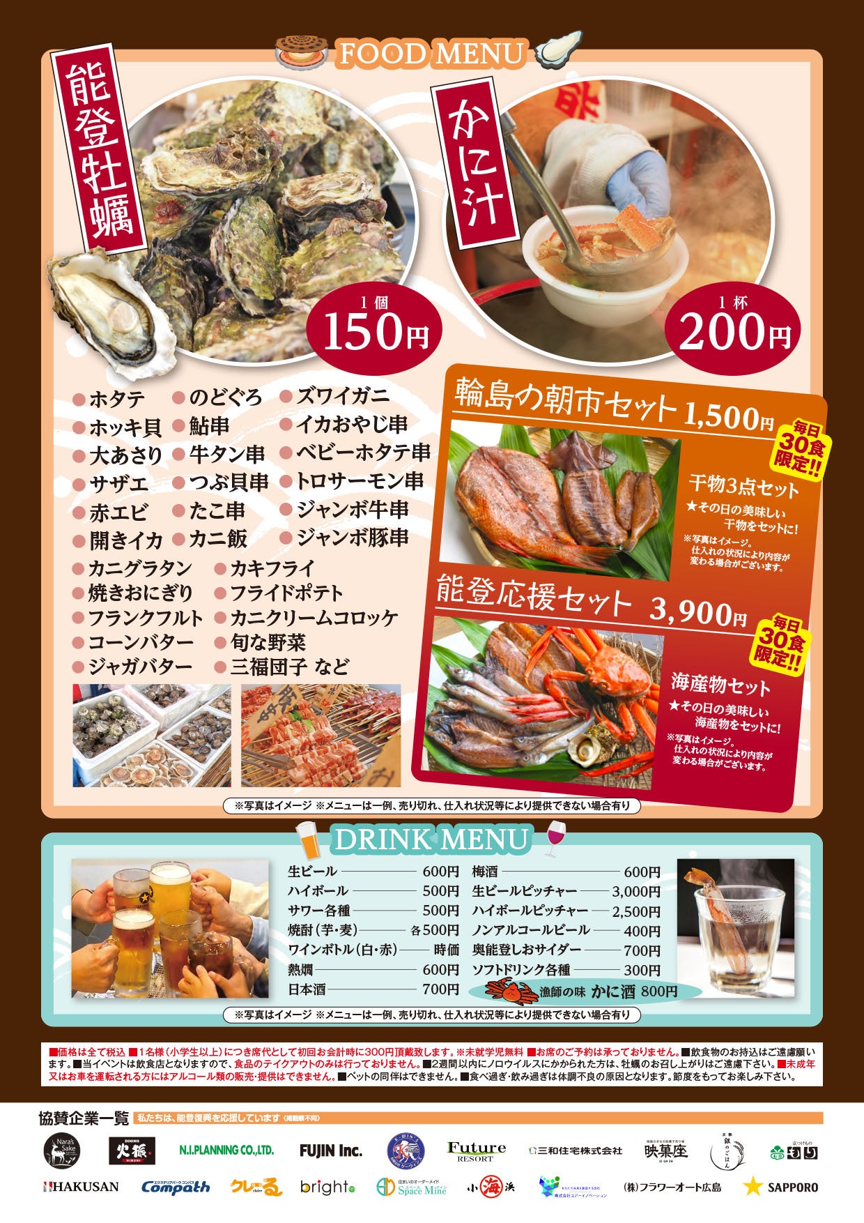 より多くの方に能登の魅力を感じていただくため、一部メニューを協賛価格でご提供いたします。