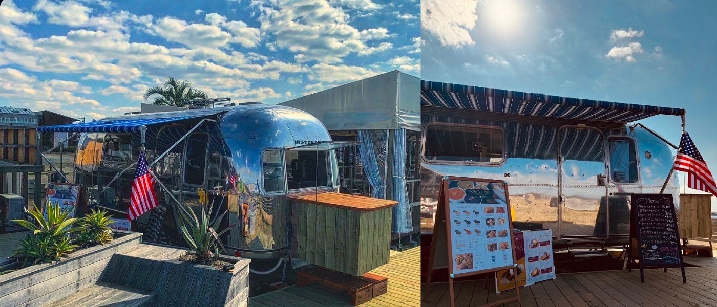 米国から輸入し施設内で使用していたエアストリームをこの度全改装し、キッチンカーとしてリニューアル致しました。リニューアルに伴い、日帰りBBQテラスエリア近くにハンモックを利用できるスペースを新たに設置し、エアストリームキッチンカーと合わせてハンモックカフェをオープンいたしました。