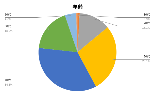 アンケートに答えて頂いた方の年齢は、以下のような割合になりました