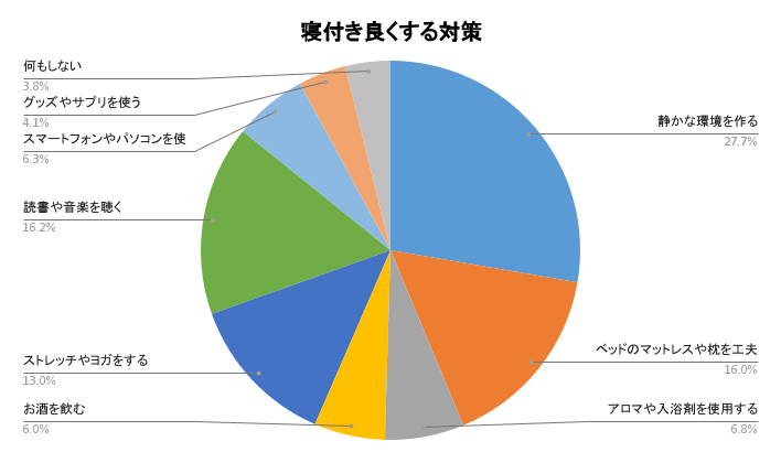 寝付きを良くする対策で多いのは静かな環境を作る27.7%