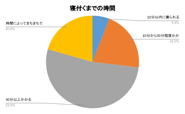寝付くまでの時間は30分以上の方が多く52.6%となりました