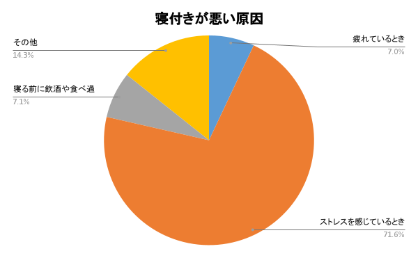 寝付きが悪い原因で最も多いのはストレスを感じているとき71.6%となりました