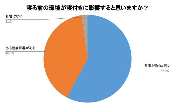 寝る前の環境で寝付きに影響すると思うのは全体の57.9%