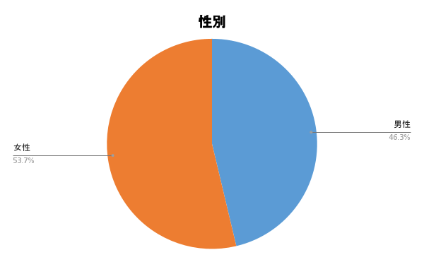 アンケートに答えて頂いた方の性別は、以下のような割合になりました