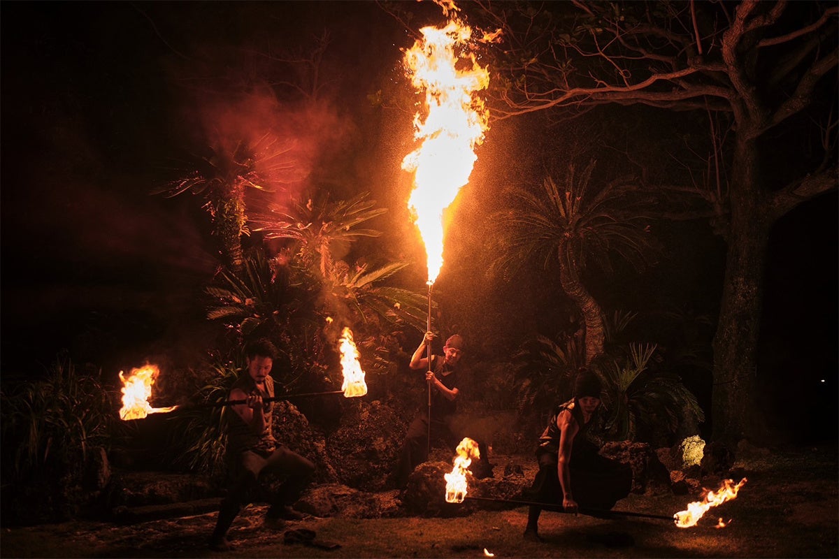 週末の夏の夜を彩るイベントでは、はいむるぶしのスタッフによるダイナミックな太鼓の音と躍動感あふれる沖縄伝統踊り「エイサー」、八重山で唯一のファイヤーパフォーマンス集団natural spiritsによる炎が夜空を彩る幻想的な「ファイヤーパフォーマンス」を行います。
