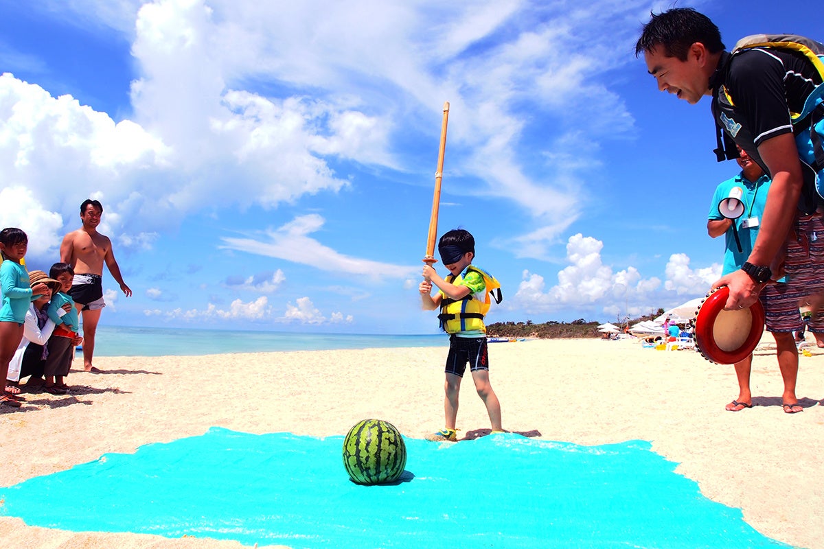 白いサンゴ砂の天然ビーチで「フローティングマット」で波に揺られてゆったりと過ごしたり、週末の人気イベント「スイカ割り」に参加したり、生まれかわるはいむるぶしのビーチでも夏ならではのプログラムをご用意しています。プールでは「浮き輪の無料貸し出し」も行っています。