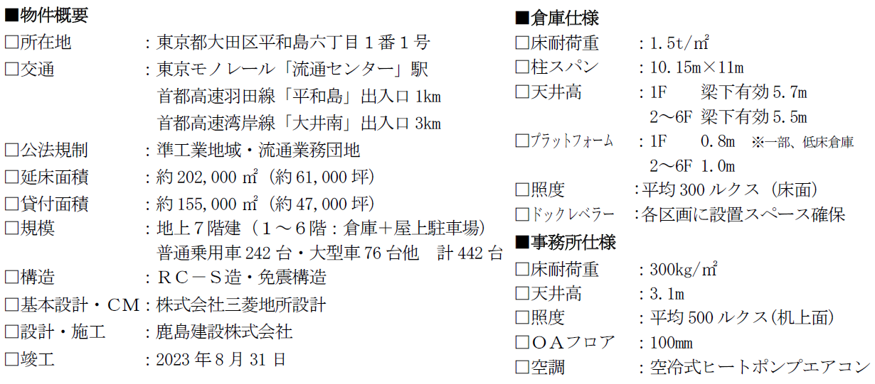 株式会社東京流通センター(以下、TRC)は、昨年8月末竣工の物流ビルA棟(地上7階建・免震構造のマルチテナント型物流施設、最小約144坪~最大約4,000坪、延床面積約61,000坪)について、リース区画を活用したモデルルームを昨年12月にオープンしております。