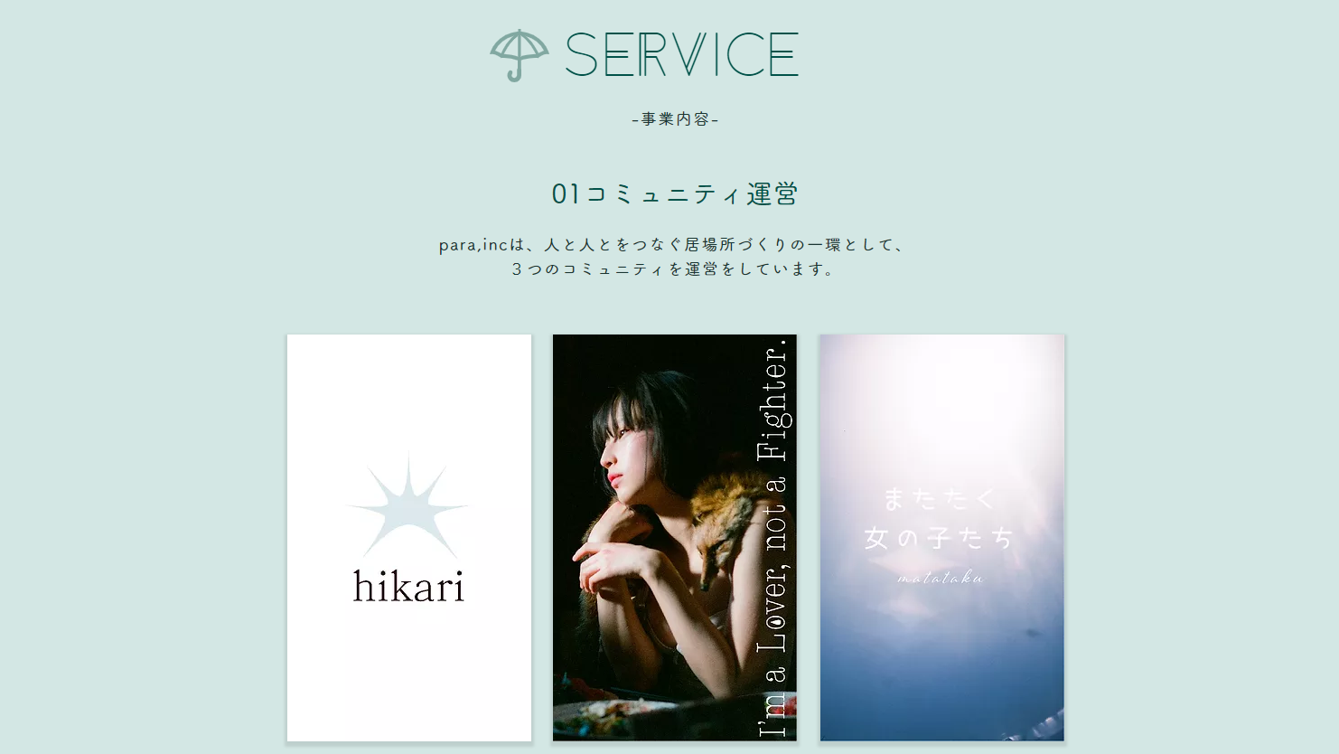 『グラビア写真』のあり方を再定義するプロジェクト『I'm a Lover, not a Fighter.』や、映画『永遠が通り過ぎていく』の制作・配給、写真展等数多くのコンテンツを制作・プロデュースする株式会社para は、この度コーポレートサイトをリニューアルいたしましたことをお知らせします。またリニューアルに伴い、弊社のコーポレートカラーを制定致しました。