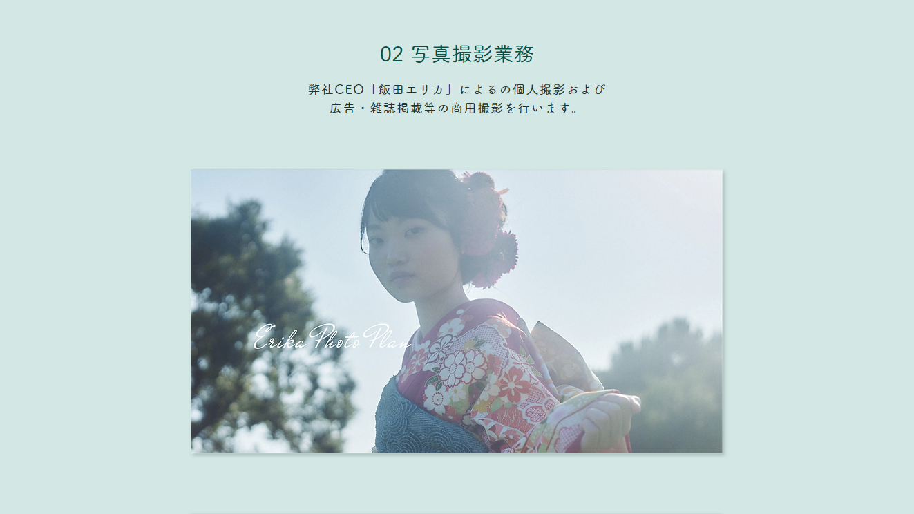 弊社CEO飯田エリカによる個人撮影および、広告・雑誌掲載等の商用撮影を行います。
